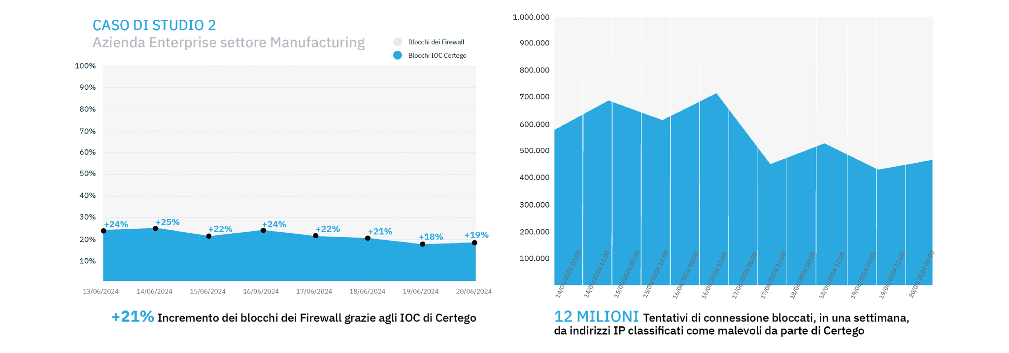 - +21% di incremento dei blocchi firewall grazie agli IOC di Certeg